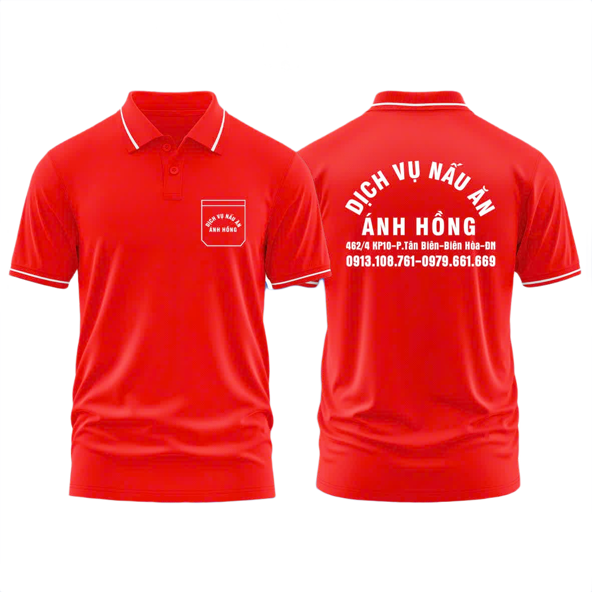 Áo thun đồng phục Polo Dịch Vụ Nấu Ăn Ánh Hồng Đỏ Sọc Trắng
