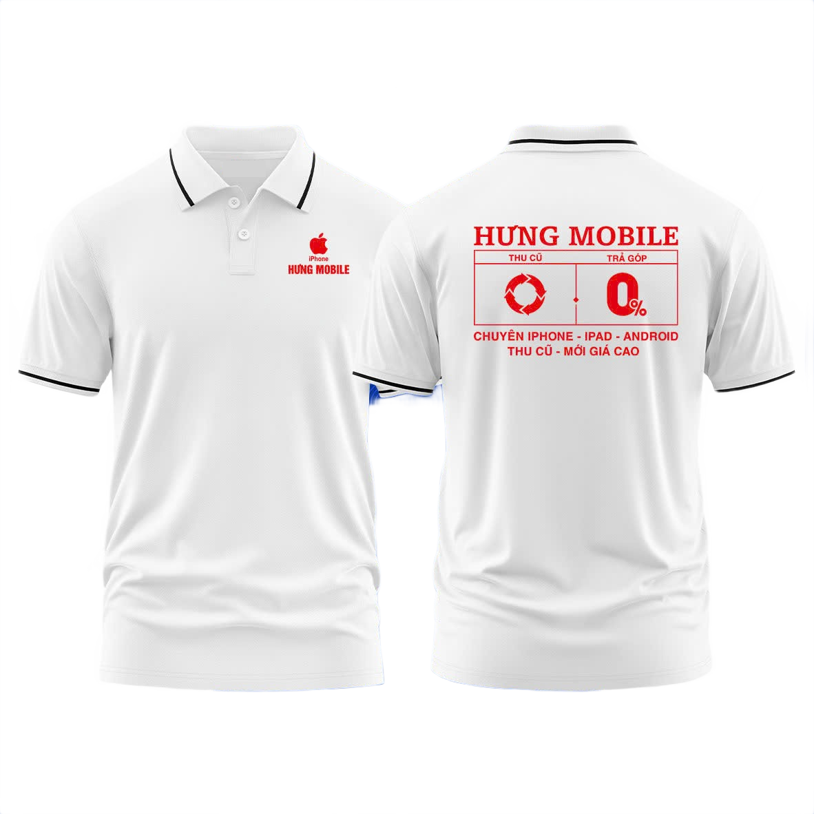 Áo thun đồng phục Polo Hưng Mobile Trắng Sọc Đ0en