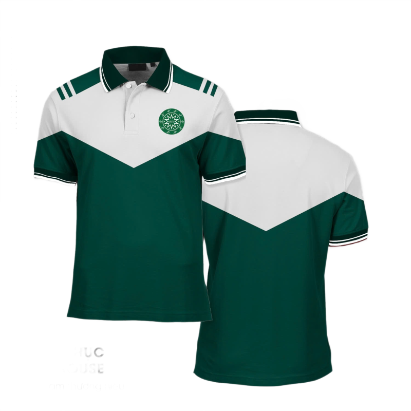 Áo thun đồng phục Polo Trắng Phối Xanh Lá Cây In Logo Ngực